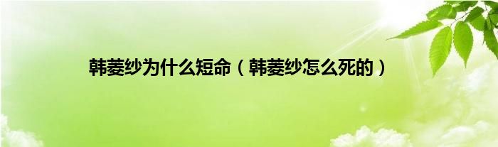 以上就是【韩菱纱为什么短命,韩菱纱怎么死的】相关内容。