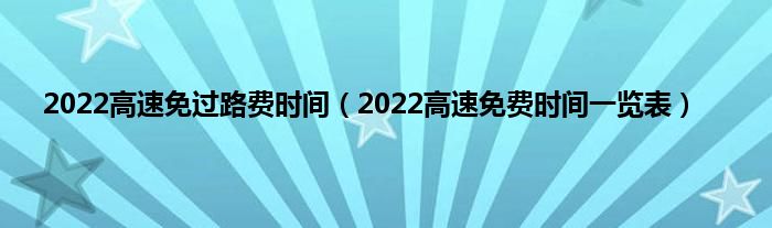 本文,2022高速免过路费时间,2022高速免费时间一览表到此就分享完毕,希望对大家有所帮助。