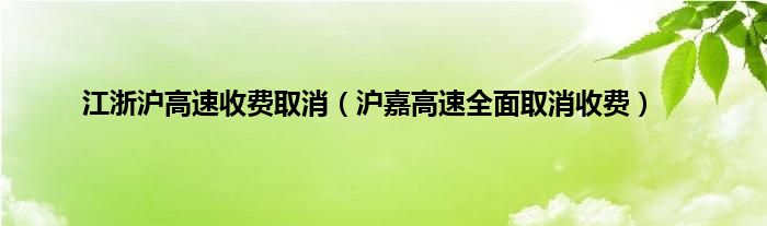 本文,江浙沪高速收费取消,沪嘉高速全面取消收费到此就分享完毕,希望对大家有所帮助。
