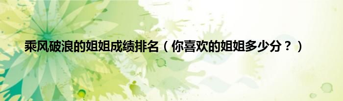 大家好,乘风破浪的姐姐成绩排名,你喜欢的姐姐多少分?很多人还不知道,现在让我们一起来看看吧!