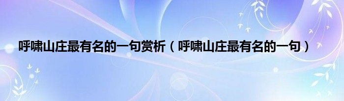 以上就是【呼啸山庄最有名的一句赏析,呼啸山庄最有名的一句】相关内容。