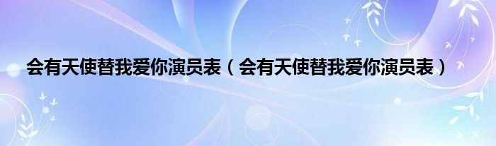 以上就是【会有天使替我爱你演员表,会有天使替我爱你演员表】相关内容。