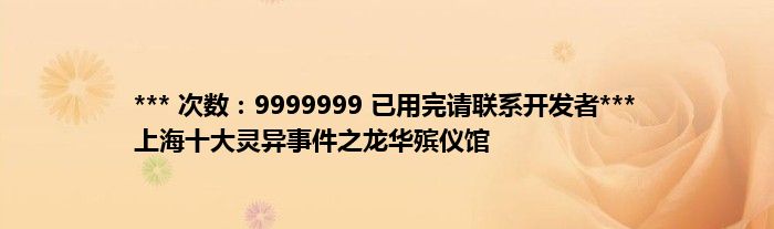 本文*** 次数:9999999 已用完请联系开发者*** 上海十大灵异事件之龙华殡仪馆到此分享完毕,希望对大家有所帮助。
