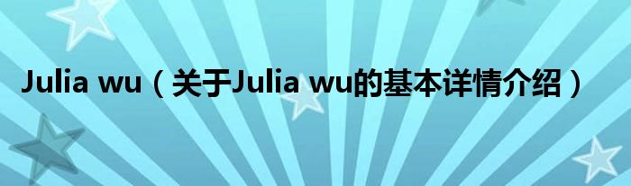 本文关于Julia wu的基本详情介绍就讲解完毕,希望对大家有所帮助。