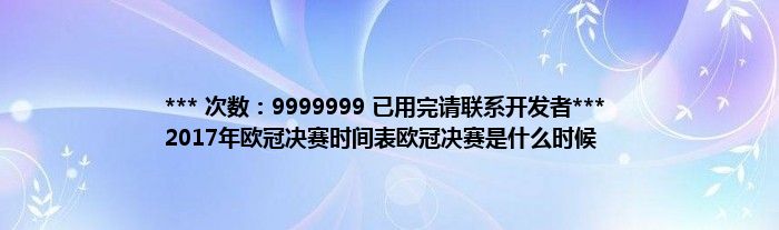 本文*** 次数:9999999 已用完请联系开发者*** 2017年欧冠决赛时间表欧冠决赛是什么时候到此分享完毕,希望对大家有所帮助。