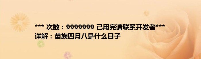 大家好,综合小编来为大家讲解下。*** 次数:9999999 已用完请联系开发者*** 详解:苗族四月八是什么日子这个很多人还不知道,现在让我们一起来看看吧!