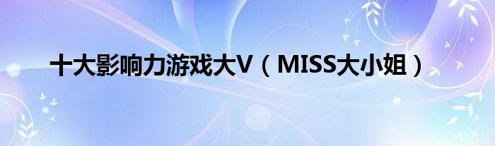 本文十大影响力游戏大V,MISS大小姐到此分享完毕,希望对大家有所帮助。
