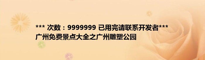 本文*** 次数:9999999 已用完请联系开发者*** 广州免费景点大全之广州雕塑公园到此分享完毕,希望对大家有所帮助。