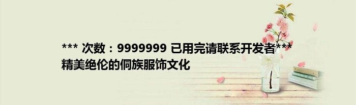 本文*** 次数:9999999 已用完请联系开发者*** 精美绝伦的侗族服饰文化到此分享完毕,希望对大家有所帮助。