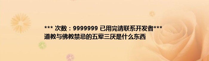 本文*** 次数:9999999 已用完请联系开发者*** 道教与佛教禁忌的五荤三厌是什么东西到此分享完毕,希望对大家有所帮助。