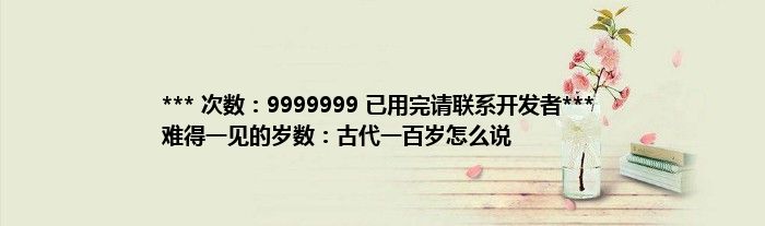 大家好,综合小编来为大家讲解下。*** 次数:9999999 已用完请联系开发者*** 难得一见的岁数:古代一百岁怎么说这个很多人还不知道,现在让我们一起来看看吧!