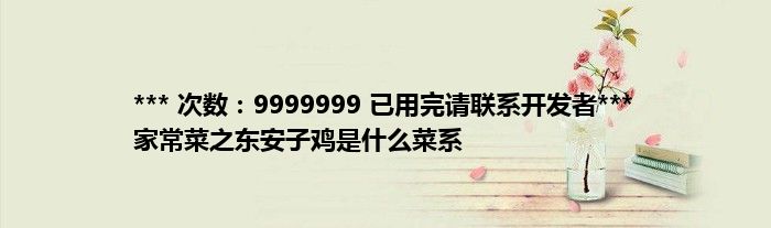 本文*** 次数:9999999 已用完请联系开发者*** 家常菜之东安子鸡是什么菜系到此分享完毕,希望对大家有所帮助。