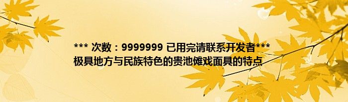 本文*** 次数:9999999 已用完请联系开发者*** 极具地方与民族特色的贵池傩戏面具的特点到此分享完毕,希望对大家有所帮助。