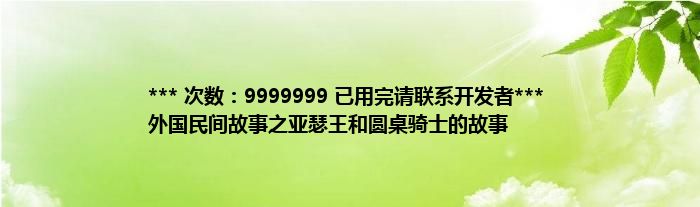 本文*** 次数:9999999 已用完请联系开发者*** 外国民间故事之亚瑟王和圆桌骑士的故事到此分享完毕,希望对大家有所帮助。