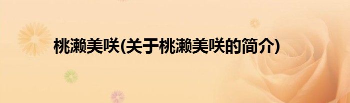 大家好,桃濑美咲,关于桃濑美咲的简介很多人还不知道,现在让我们一起来看看吧!