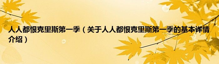 本文关于人人都恨克里斯第一季的基本详情介绍就讲解完毕,希望对大家有所帮助。