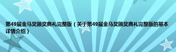 本文关于第49届金马奖颁奖典礼完整版的基本详情介绍就讲解完毕,希望对大家有所帮助。