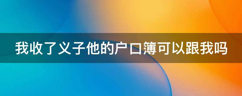 你收了义子他的户口簿不可以跟你,因为义子与义攵是不存在直属亲人关系的,不能办理收养手续。户口簿一般指居民户口簿。居民户口簿是我国公民的重要证件,由中华人民共和国公安部制,用于登记住户人员的姓名、籍贯、出生年月日、具体职称、职业等内容的簿册。在上学、结婚、领取护照,以及办理很多重要事情时均需使用。居民户口簿具有证明公民身份状况,以及家庭成员间相互关系的法律效力,是户口登记机关进行户籍调查、核对的主要依据。户口登记机关工作人员进行户籍调查、核对时,户主或本户成员应主动交验居民户口簿。