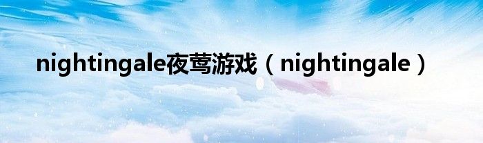 大家好,小问来为大家解答以上问题。nightingale夜莺游戏,nightingale这个很多人还不知道,现在让我们一起来看看吧!