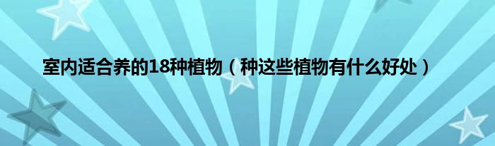 欢迎观看本篇文章,小升来为大家解答以上问题。室内适合养的18种植物,种这些植物有什么好处很多人还不知道,现在让我们一起来看看吧!