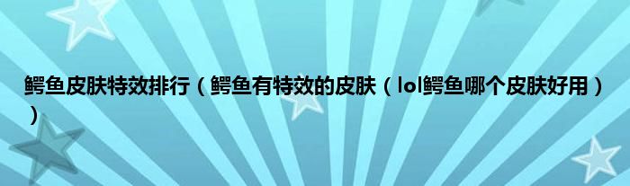 鳄鱼皮肤特效排行(鳄鱼有特效的皮肤(lol鳄鱼哪个皮肤好用))