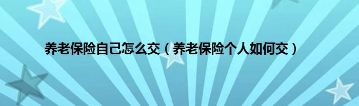 欢迎观看本篇文章,小升来为大家解答以上问题。养老保险自己怎么交,养老保险个人如何交很多人还不知道,现在让我们一起来看看吧!