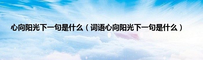 欢迎观看本篇文章,小升来为大家解答以上问题。心向阳光下一句是什么,词语心向阳光下一句是什么很多人还不知道,现在让我们一起来看看吧!