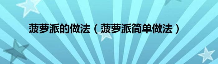 欢迎观看本篇文章,小升来为大家解答以上问题。菠萝派的做法,菠萝派简单做法很多人还不知道,现在让我们一起来看看吧!