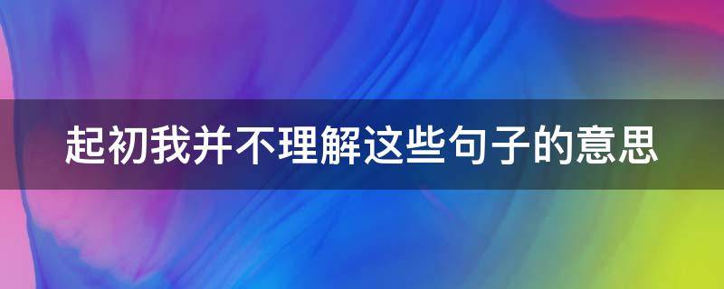 起初我并不理解这些句子的意思是开始的时候,我并不了解这些句子。起初的释义为最初、起先、当初,出自《赚蒯通》第一折:你起初时要他,便推轮捧毂;后来时怕他,慌封侯蹑足。明凌濛初《初刻拍案惊奇》卷一二:想著起初,只是一时拾得掷瓦,做此戏谑之事。理解的意思是顺着条理进行详细的分析,从一定的认知上了解、明白。宋苏轼《众妙堂记》:庖丁之理解,郢人之鼻斲,信矣。元刘将孙《登仕郎赣州路同知宁都州事萧公行状》:纷纭蜂舞,未易缕析而理解者。