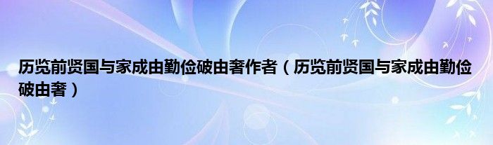 以上就是【历览前贤国与家成由勤俭破由奢作者,历览前贤国与家成由勤俭破由奢】相关内容。