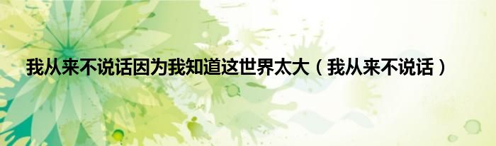 以上就是【我从来不说话因为我知道这世界太大,我从来不说话】相关内容。