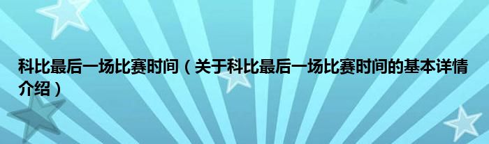 本文关于科比最后一场比赛时间的基本详情介绍就讲解完毕,希望对大家有所帮助。