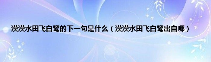 欢迎观看本篇文章,小升来为大家解答以上问题。漠漠水田飞白鹭的下一句是什么,漠漠水田飞白鹭出自哪很多人还不知道,现在让我们一起来看看吧!