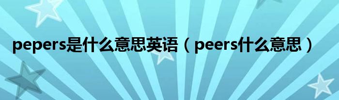 大家好,小问来为大家解答以上问题。pepers是什么意思英语,peers什么意思这个很多人还不知道,现在让我们一起来看看吧!