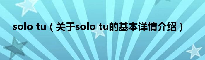 本文关于solo tu的基本详情介绍就讲解完毕,希望对大家有所帮助。