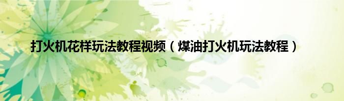 以上就是【打火机花样玩法教程视频,煤油打火机玩法教程】相关内容。
