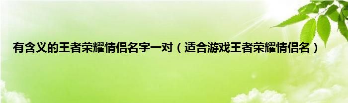 欢迎观看本篇文章,小升来为大家解答以上问题。有含义的王者荣耀情侣名字一对,适合游戏王者荣耀情侣名很多人还不知道,现在让我们一起来看看吧!