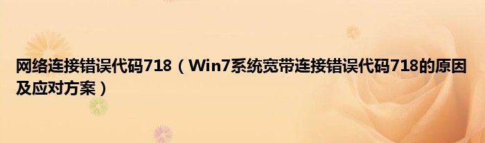 网络连接错误代码718(Win7系统宽带连接错误代码718的原因及应对方案)