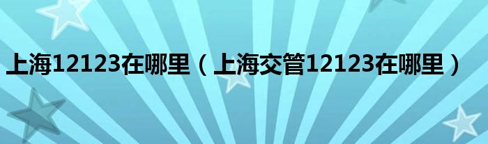 大家好,综合小编来为大家讲解下。上海12123在哪里,上海交管12123在哪里这个很多人还不知道,现在让我们一起来看看吧!