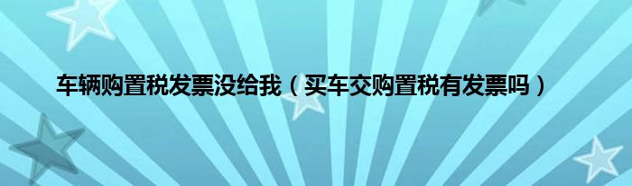 大家好,综合小编来为大家讲解下。车辆购置税发票没给我,买车交购置税有发票吗这个很多人还不知道,现在让我们一起来看看吧!