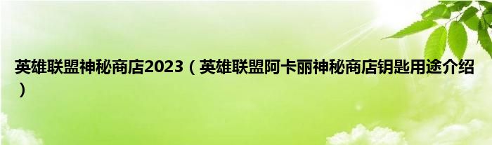 大家好,综合小编来为大家讲解下英雄联盟神秘商店2023,英雄联盟阿卡丽神秘商店钥匙用途介绍这个很多人还不知道,现在让我们一起来看看吧!