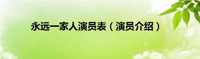 欢迎观看本篇文章,小升来为大家解答以上问题。永远一家人演员表,演员介绍很多人还不知道,现在让我们一起来看看吧!