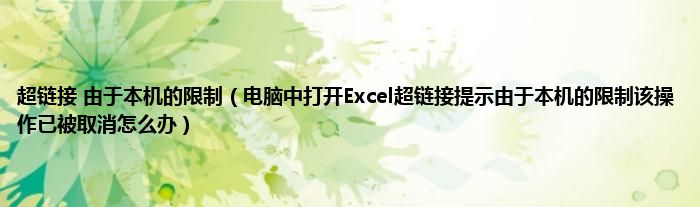 大家好,综合小编来为大家讲解下超链接 由于本机的限制,电脑中打开Excel超链接提示由于本机的限制该操作已被取消怎么办这个很多人还不知道,现在让我们一起来看看吧!