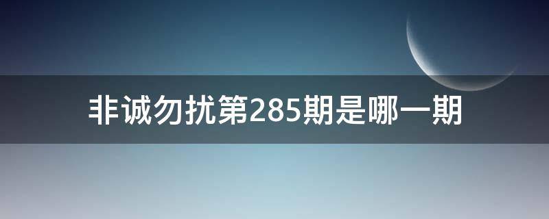 最佳答案非诚勿扰第285期是2022年5月28日这一期,《非诚勿扰》是江苏卫视制作的一档生活服务类节目。节目中的24位女嘉宾以亮灭灯方式来决定男嘉宾的去留,通过爱之请回答、爱之再判断、爱之终决选三个环节来决定男女嘉宾的速配成功。节目于2010年1月15日起每周六、日晚21点10分在江苏卫视首播,2015年1月3日...
