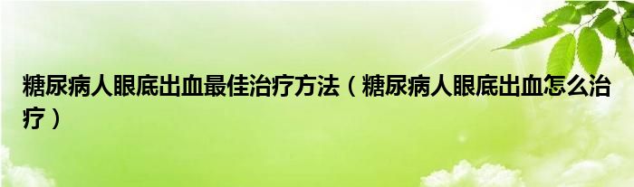 大家好,乐天来为大家解答以下的问题,糖尿病人眼底出血最佳治疗方法,糖尿病人眼底出血怎么治疗很多人还不知道,现在让我们一起来看看吧!