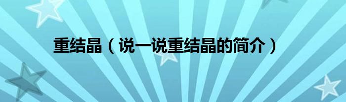 夏弥来为大家解答以下的问题,重结晶,说一说重结晶的简介,现在让我们一起来看看吧!