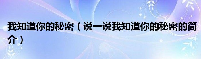 我知道你的秘密(说一说我知道你的秘密的简介)