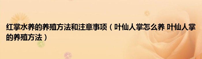 关于红掌水养的养殖方法和注意事项,叶仙人掌怎么养 叶仙人掌的养殖方法这个很多人还不知道,今天菲菲来为大家解答以上的问题,现在让我们一起来看看吧!