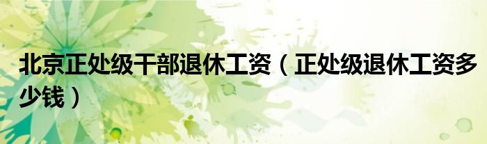 关于北京正处级干部退休工资,正处级退休工资多少钱这个很多人还不知道,今天菲菲来为大家解答以上的问题,现在让我们一起来看看吧!