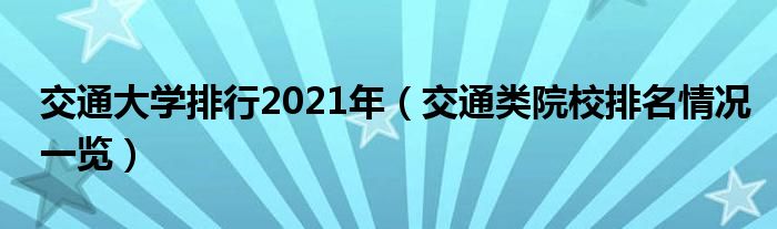 大家好,乐儿来为大家解答以下问题,交通大学排行2021年,交通类院校排名情况一览很多人还不知道,现在让我们一起来看看吧!